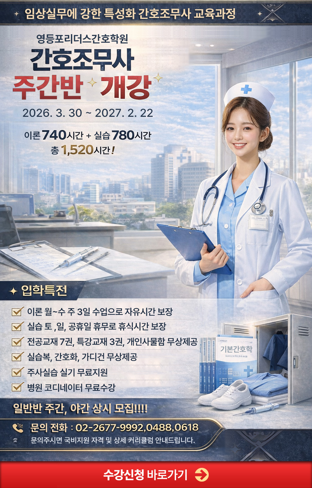 안녕하세요! 영등포리더스간호학원에서 2025년 봄학기 간호조무사 자격증 취득 과정을 준비하였습니다!